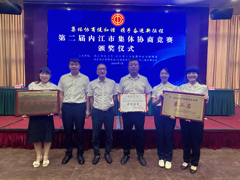 7月25日,由市總工會、市人社局、市企業家聯合會、市工商聯聯合舉辦的“集體協商促和諧 攜手奮進新征程”第二屆內江市集體協商競賽圓滿落幕。市水務公司代表隊經過初賽、復賽和決賽三輪比拼,在12支隊伍的激烈角逐中脫穎而出,最終榮獲第二名。