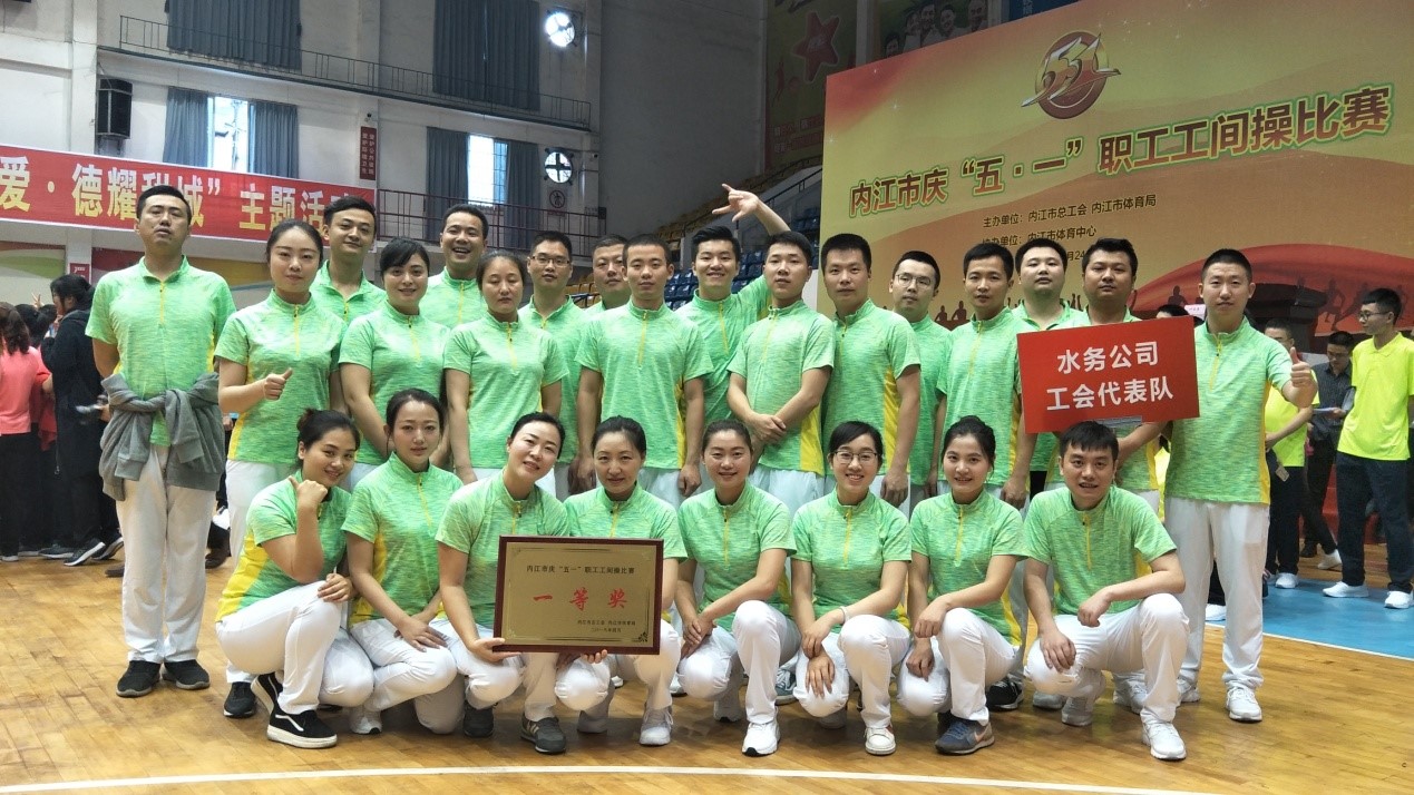 我司33名隊員以飽滿的精神、剛勁的動作詮釋了工間操的時代氣息,展示了水務職工健康向上、團結協作的精神風貌。經過緊張激烈的角逐,我司取得總分第五名的成績,榮獲一等獎。